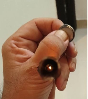 Components: 5mm borosilicate glass ball, nanoscale -transparent cello tape both sides, coin cell 3V, Chip (SMD) LED day light color, wires, specimen (dried leaf)